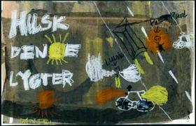 Denne tegning var med til at sikre 4. A på Langhøjskolen i Vivild 1. præmien i Dansk Cyklist Forbunds landsdækkende tegnekonkurrence, som var en del af lygte- og reflekskampagnen »LYS PÅ«.
