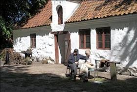 Forfatteren, Kirsten Eriknauer interviewer en af de gamle smede i lauget, Thyge Jørgensen. (Foto: Dansk Landbrugsmuseum)