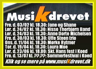 Der er lagt op til et musikalsk spændende program i Koed midt på Djursland, med hele 8 arrangementer, henover vinter, forår og midsommer. Check det ud.