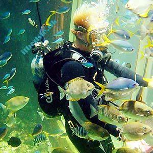 Kl. 13.00 er der dykkerfodring i Oceanariet.