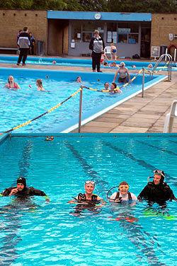 Svømmeklubben inviterede til aftensvømning og -dykning i det udendørs svømmebad. Instruktører fra Ebeltoft Dykkerklub kom med udstyr og fire modige fra “Delfinen” tog imod udfordringen. Det var en rigtig stor oplevelse, fortæller Gitte Johnsen, formand for Svømmeklubben Delfinen. Hun var én af de fire, og mener nu, at det måske var første skridt til at få sig et dykkercertifikat.