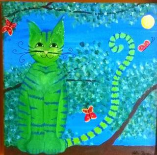 Helle Børsen Rosholms farverig billeder udstilles på Grenaa Bibliotek i juni måned