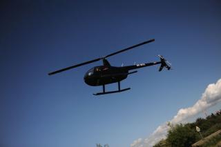 Helikopteren er af typen Robinson R44, som har et stort vinduesparti, hvilket giver et optimalt udsyn, så det føles som at sidde i en glasboble og svæve over landskabet.