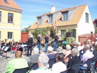 Prinsens Musikkorps spiller på Torvet i Ebeltoft.