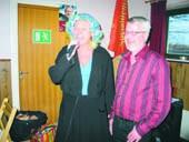 Den socialdemokratiske folketingskandidat Jan Petersen fik sunget fødselsdagssang af farverige Tante Andante (alias Benedicte Riis) i Sangstrup Forsamlingshus tirsdag i sidste uge
