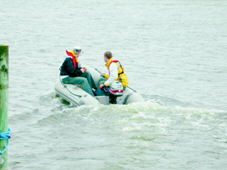 og godkendte, selvoppustelige redningsveste samt en 4 HK påhængsmotor. Veste og motor
