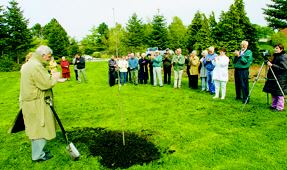 Grenaa Kommunes borgmester forestod plantningen af »Kronprins Frederiks Eg« i Mølleparken på toppen af Baunhøh tirsdag eftermiddag i sidste uge. Foto: Lene Madsen
