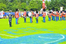 Opstilling på Stadion var et farverigt skue, med spillere og orkestre.