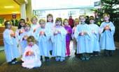 Børnene, der er i alderen 3-6 år, lavede et flot Santa Lucia-optog i banken, og spredte således julestemningen blandt bankens kunder og personale. Bagefter pyntede børnene bankens juletræ med den hjemmelavede pynt, mens de hyggede sig med juice og lidt guf.