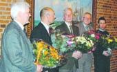 – – Fem glade nyudnævnte direktører: Fra venstre Keld Overgaard Jensen, vicekommunaldirektør, Steen Møller Andersen, Teknik og Miljø, Finn Byrialsen, Børn og Unge, Peter Hjulmand Nielsen, Kultur og Udvikling og Kenneth Koed Nielsen, Voksen og Pleje.