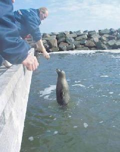 Stormen den 28. december 2006 var hård ved Kattegatcentret. Den voldsomme blæst fra nordøst betød, at meterhøje bølger havde direkte adgang gennem indsejllingen i moleanlægget ved Kattegatcentrets lagune. Kraften mod det udendørs sælanlæg var så voldsom, at det undersøiske hegn gik i stykker. 4 (Sally, Molly, Soffy og Sylvia) af de 5 sæler i anlægget er undsluppet i det fri. Det er 3 spættede sæler og en gråsæl. Nelly, en af de spættede sæler var tilbage. Hun blev indfanget og vil fremover kunne opleves på Sælariet i Esbjerg. (arkivfoto)