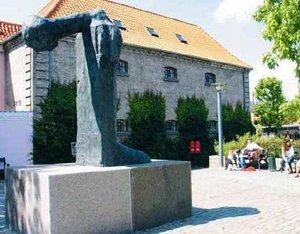 Man finder den pÃ¥ Torvet i Grenaa. Skulpturen er opstillet i 1995 i anledning af Grenaa’s 550 Ã¥rs købstadsjubilæum. Materiale: Bronze pÃ¥ granitsokkel. Kunstneren hedder Peter Brandes og Djurslands Bank stod bag finansieringen.