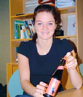Annemette Dohn Ravn går på 2. år på den naturvidenskabelige linie på Teknisk Gymnasium i Grenaa. I efteråret var råvarer som humle, gær, sukker og vand en del af fagene biologi og kemi. På bordet står en flaske hjemmebrygget øl. Etiketten har Annemette designet sammen med fem medstuderende, så helheden i temaopgaven er fuldendt.
