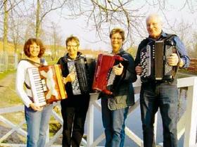 »Trækfuglene« (billedet) - som er en gruppe meget dygtige harmonikaspillere - kommer og spiller og synger for til de mange fællessange omkring havet, som skal afsynges denne torsdag aften. »Trækfuglene« består af Kirsten Jacobsen, Birgit Tonsgaard, Mona Christensen og Gunnar Mortensen.