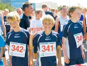 Sundhedsugen startede officielt lørdag den 31. maj og slutter på søndag den 8. juni. Men man kan måske sige, at den tyvstartede allerede den 24. maj, idet Grenaa Løbet 2008 blev skudt i gang. Her ses tre raske drenge lige før løbet blev skudt i gang. Der var i øvrigt rekorddeltagelse i år med næsten 500 løbsdeltagere.