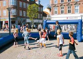 Årgangen sørgede nemlig for oppustelige fodboldbaner og gymnastik for de små årgange på Torvet i Grenaa mandag i sidste uge, og det skal siges, at der blev gået til den - selv om underlaget nok ikke kan kaldes for optimalt. Det kunne således godt gøre lidt ondt at ryge på r.... - men det så nu ikke ud til at virke hæmmende på spillet. Der blev med andre ord gået til vaflerne, og alle så ud til at have det sjovt. Dette tilbud om motion på Torvet var blot ét blandt mange, mange andre - spredt ud over hele den nye storkommune. Sundhedsugens program rummede over 100 forskellige sundheds-aktiviteter, og strakte sig fra den 31. maj til søndag den 8. juni. De sidste punkter på programmet var Fjellerup-marchen og en lokal udgave af den landsdækkende Store Cykeldag. Med udgangspunkt fra Grenaa Naturskole cyklede man i roligt tempo på oplevelses-tur her på det østlige Djursland.