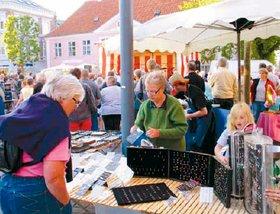 Der var også mange forskellige kræmmer-boder i forbindelse med Open by Night i Grenaa. Dette billede er taget på Torvet ved kirken.