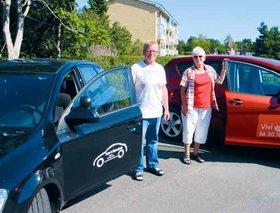 Den nye kørelærer i Grenaa, René Holst Viborg Madsen, med sin nye køreskolevogn, en Kia Ceed, og kørelærer Vivi Boe, hos hvem han har lejet lokaler.