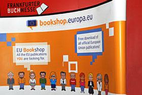 Plakat fra EU Bookshop ved lanceringen af det digitale bibliotek på bogmessen i Frankfurt (Foto (c) EF)