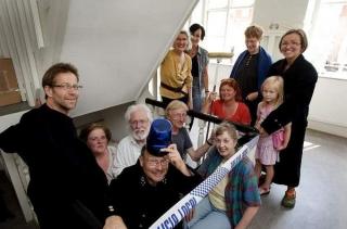De 17 kunstnere i Syddjurs som sammen står bag udstillingen "Blå Blik" på den gamle politistation i Ebeltoft.