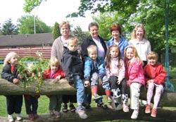 Børn fra Sct. Georgsgårdens børnehave, samt fra venstre souschef Marie Petersen, Glesborg, souschef Hanne Hoffmeyer, Voldby, fysioterapeut Hanne Olsen, PPR, og pædagog Tinne Christiansen, Glesborg.