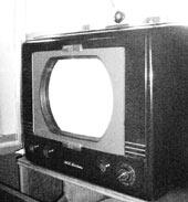 På Djurslands Museums radioudstilling kan man nu se landets måske ældste fjernsynsaparat. Det drejer sig om en amerikansk RCA-VICTOR model fra 1949, noget i stil med det apparat som Erik i »Krøniken« bragte med hjem fra sin første USA-tur og som gik op i røg på Bella’s laboratorium. Billedet er ganske lille. Billedrøret er ca. på størrelse med en LP-plade. For at få et billedformat, der minder lidt om det firkantede filmformat, har man afmasket toppen og bunden af det cirkelrunde billedrør.