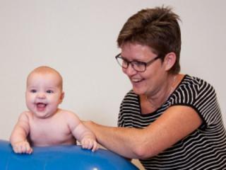 Fysioterapeut Mette Degn Larsen viser babymassage.
