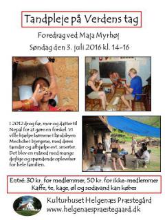 Foredrag ved Maja Myrhøj om Tandpleje på Verdens Tag på Helgenæs søndag d. 3/7 kl. 14-16