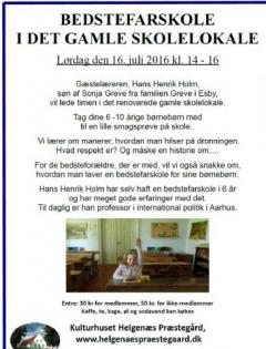 Bedstefarskole i Den Gamle Skole i Kulturhuset Helgenæs Præstegård Lør. d. 16. juli 2016 , kl. 14-16