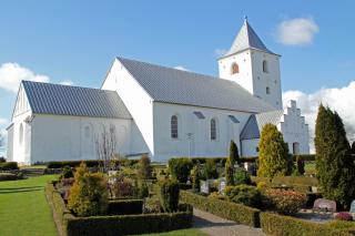Den treskibede landsbykirke i Tamdrup ved Horsens.