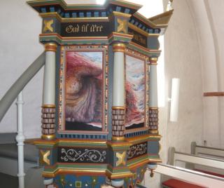 Noget af Anders Kirkegaard udsmykning i Torsted Kirke.