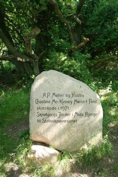 Cykelturen i dag, bringer deltagerne til Skovbjerg i Mols Bjerge og på en lille vandretur til mindestenen for A. P. Møller, der opkøbte området, men i 1971 overdrog området til Statsskovvæsnet. Dette opkøb har formodentlig reddet området fra at ende som sommerhusområde. I dag er skoven fredet og får lov at stå uberørt hen som en smuk naturskov. Dagens guide er Ove. - Man betaler 40 kr. for at deltage hvis ikke man har eller får sig et medlemskab af Turistforeningen.