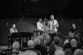 Martin Schack, klaver, Morten Ramsbøl, bas, Michael Olsen, saxofon, og Morten Lund, trommer.