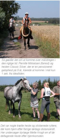 Nørre Djurs Rideklub i Veggerslev var i forrige weekend for tredje år i træk arrangør af et distancestævne, hvor heste og ryttere skulle gennemføre en rute på 26, 37 eller 63 km. I modsætning til de traditionelle ridestævner er distanceridtet en meget social disciplin, hvor rytterne har mulighed for at snakke og hygge sig med hinanden på turen rundt i landskabet, ligesom stævnet for mange starter med en overnatning i telt i foldene ved siden af hestene. Men konkurrencemomentet er ikke til at overse: I de korte klasser skal distancen skal rides med en bestemt gennemsnitshastighed og fuldføres så tæt på idealtiden som muligt, mens det på den længste distance gælder om at komme først i mål.