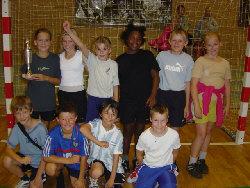 Som afslutning på stævnerne, der for 4. klassernes vedkommende blev afviklet i Midtdjurshallen og i Kolind Hallen for den yngre årgang, blev der uddelt pokal og diplomer. Desuden information om træningstider og facts om de to arrangerende håndboldafdelinger.