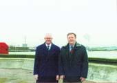 Formanden for Grenaa Havn A/S, Kenny Jensby (til venstre) og havnens adm. direktør Henning Laursen tror på en gylden fremtid for Grenaa Havn på trods af et meget ringe årsresultat for 2004. Havnen gav sidste år et regnskabsmæssigt underskud på 9,3 millioner kroner. De 6 millioner kan dog henføres til oprydning efter den forrige ledelses gøren og laden.