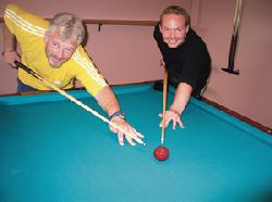 To arbejdskammerater fra Terma A/S i Grenaa, 42-årige Lars Bowman og 29-årige Allan Jacobsen, har netop realiseret en gammel drøm, idet de har åbnet deres egen café og poolbar i Grenaa - nærmere bestemt i erhvervslokaler i Passagen 4, der senest har huset Nykredits Grenaa-afdeling.
