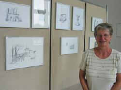 Stig Holsting-tegninger med motiver fra det nordlige Djursland udstilles lige nu i Det Gamle RÃ¥dhus i Grenaas