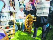 Arrangementer på Landbrugsmuseet er typisk også stedet hvor husfliden vises frem og demonstreres. Her fra en situation, hvor en af husflidsdamerne er i aktion ved en bod.
