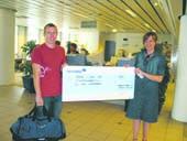 Grenaa-gymnasten Stig Buhl Christensen fik onsdag i sidste uge overragt en check på 2.500 kr. i Nordeas afd. i Grenaa, af kundemedarbejder Irene Christensen. Oveni fulgte en sportstaske, der indeholdt træningsdragt, rygsæk, og diverse sportsudstyr.