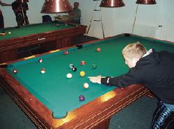 PÃ¥ billedet ses et af klubbens ungdomsmedlemmer i dyb koncentration i en af klubbens interne poolturneringer.