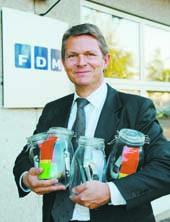 På billedet ses FDM’s adm. direktør Thomas Møller Thomsen med en af syltekrukkerne.