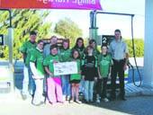 grenaa bladet: En check på 43.000 kroner til Østdjurs Håndbold - det er ikke så ringe endda! Checken blev for nylig overrakt til disse håndbold-piger fra Østdjurs Håndbold af indehaveren af OK-tanken i Trustrup, Thomas Larsen.